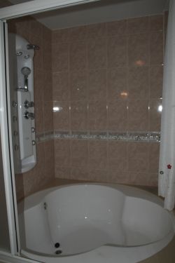 Pero una de las estancias que más sorprende es el cuarto de baño principal, en el que se ha colocado una espaciosa bañera tipo jacuzzi con columna de hidromasaje al fondo de una espaciosa estancia en la que se reparten el mueble que hace las veces de lavabo y el resto del mobiliario sanitario. La habitación de matrimonio también cuenta con baño propio, que al contrario del habitual plato de ducha incluye también una bañera.