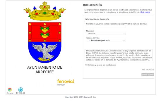 La Concejalía de Parques y Jardines del Ayuntamiento de Arrecife, a través del contrato de gestión del servicio de creación, conservación, limpieza y mantenimiento de parques, zonas verdes y jardines del término municipal de Arrecife, del que la empresa Ferrovial Servicios es concesionaria en la actualidad, tiene a disposición de los ciudadanos el servicio de aviso de incidencias de parques y jardines de Arrecife.