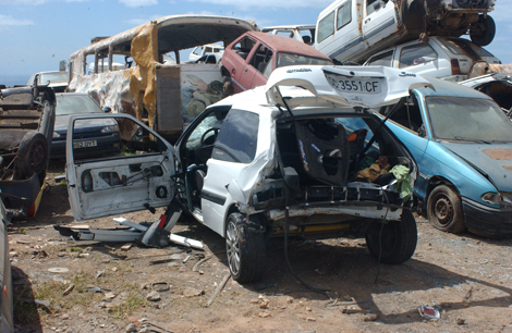 Así quedó el vehículo en el que falleció José Carlos Hernández Hernández el 5 de abril de 2006, tras el accidente en Puerto del Carmen.