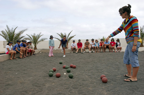 El consejero de Juventud y Deportes del Cabildo de Lanzarote, Manuel Cabrera, visitó este jueves, 3 de julio, a los 66 niños inscritos en el primer turno del tradicional campamento de verano que se desarrolla en el Albergue Juvenil de La Santa.