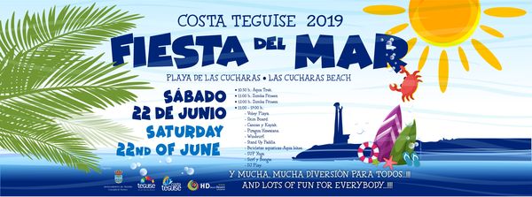 La playa de Las Cucharas de Costa Teguise vivirá de nuevo su gran cita de bienvenida a la estación estival, la Fiesta del Mar. Este sábado 22 de junio partir de las 10.30 horas, se ofertarán múltiples actividades para niños, jóvenes y mayores: aqua trek, zumba fitness, voley playa, skim board, canoas, kayak, piragüa hawaina, windsurf, stand up paddle, aqua bikes, SUP yoga, surf, boogie,… y mucha diversión para todos con música DJ hasta las 17.00 horas.