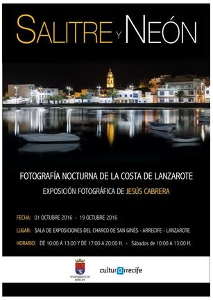 La Sala Municipal de Exposiciones del Charco de San Ginés acogerá a este sábado, 1 de octubre, la inauguración de la muestra “Salitre y Neón”, del fotógrafo Jesús Cabrera, organizada por la Concejalía de Cultura del Ayuntamiento de Arrecife.