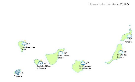 Los cielos estarán nubosos en el norte de las islas y podría llover de forma débiles en las más montañosas, las temperaturas experimentarán pocos cambios y los vientos serán del nordeste con rachas de 70 kilómetros por hora, según ha difundido este martes en un comunicado de prensa la Agencia Estatal de Meteorología (Aemet).