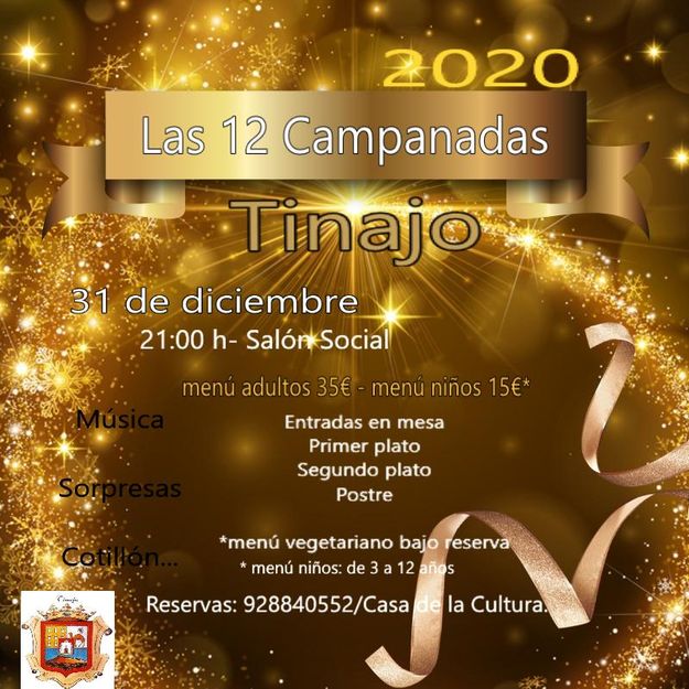 Para el último día del año, el martes 31 de diciembre, el Consistorio tinajero ha preparado en el Salón Social de Tinajo la gran fiesta y cena de fin de año “Las 12 campanadas en Tinajo” con mucha música y sorpresas que van a llenar esa noche de recuerdos inolvidables.