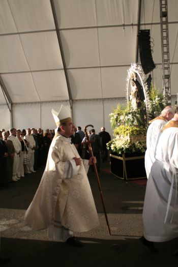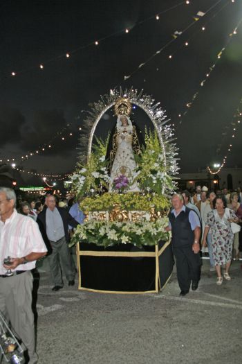 La Virgen, que partió de la iglesia de Mancha Blanca y continuó hasta la carpa de la fiesta para luego regresar, llevaba tras de sí una oleada humana cuyo único objetivo era acompañar con respeto y devoción cristiana a la Virgen en su trayecto. La Banda de Música municipal no faltó a la tradicional marcha.