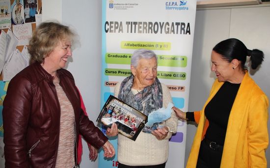 Tal y como apunta este martes en nota de prensa el Ayuntamiento de Yaiza, Dolores asiste lunes martes y miércoles, tres horas cada día, a las clases impartidas por el CEPA en la Unidad de Actuación de Personas Adultas Yaiza, donde un total de 23 alumnos aprenden lectura, escritura, matemáticas y sociales, en el mismo inmueble municipal que acogió el agasajo.