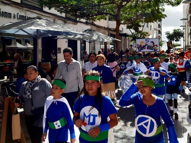 Cada uno de los colegios ha partido desde sus respectivos centros andando hasta llegar al centro de Arrecife, y realizar una exhibición por la céntrica calle Real.