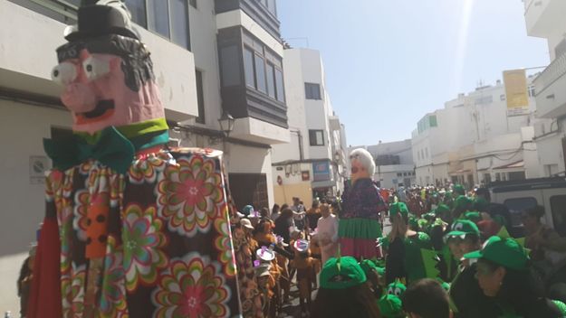 El miércoles, 19, el pasacalles estuvo protagonizado por los alumnos de los colegios La Destila y Adolfo Topham. Ayer jueves fue la comunidad educativa de los CEIP Capellanía, Antonio Zerolo , del barrio de Las Salinas, y Benito Méndez Tarajano, del barrio de Titerroy.