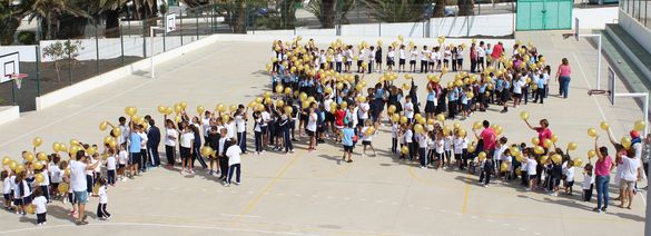 En respuesta a la misma, el Ayuntamiento de Teguise ha colgado un lazo solidario en la fachada del Ayuntamiento y otras dependencias municipales, y en los centros educativos del municipio los niños han colaborado formando un lazo humano con globos amarillos en sus patios.