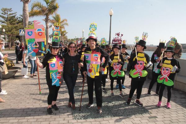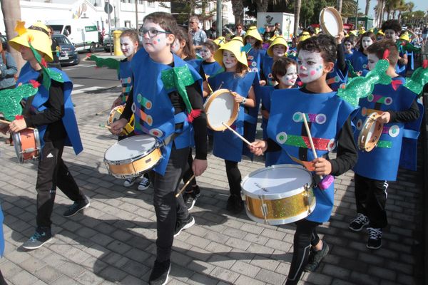 Las calles del centro de Arrecife se tiñeron este miércoles de música y color con numerosos guiños al artista César Manrique por parte de los 546 niños y niñas de los colegios del municipio que participaron en el Carnaval Escolar organizado por el Ayuntamiento a través de la Concejalía de Educación.