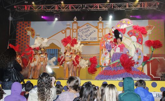 Los drag queens invitados al Carnaval de Playa Blanca hicieron toda una exhibición de puesta en escena, humor, baile, plasticidad y acrobacia, luciendo trajes fantásticos y dominando enormes plataformas de más de diez centímetros de altura, según ha explicado la institución sureña en nota de prensa.
