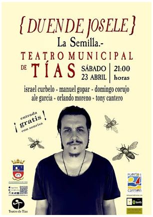 El concierto gratuito de Duende Josele el sábado a las 21:00 horas será el broche musical a la Feria del Libro de Tías. El poeta y músico extremeño, José Manuel Díez, presentará su último disco “La Semilla” acompañado por los músicos, Manuel Gopar (guitarra y timple), Domingo Corujo (bajo), Israel Curbelo (teclados y cajón flamenco), Tony Cantero (guitarra eléctrica), Orlando Moreno (trompeta) y Ale García (batería).