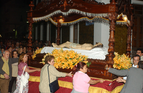 La muerte de Cristo se conmemora la noche del viernes con la celebración del Santo Entierro, precisamente una de las procesiones más llamativas y más sentidas entre los cristianos. Al caer la tarde se organiza la procesión del Santo Entierro, durante la cual se conmemora la muerte y sepelio de Jesús. Esta es una procesión bastante solemne y de sonidos graves. En las iglesias, la imagen de Cristo es colocada en un ataúd, el cual es cargado en hombros o arrastrado por varias personas mientras recorre distintas calles, seguido por una multitud silenciosa, que en algunos lugares se iluminan con velas o antorchas. La lenta marcha es acompañada por el redoblar de tambores y el sonido de instrumentos de viento, en la Isla interpretados por la Banda Municipal, que tocan marchas fúnebres. El acto está pensado para las 22 horas.