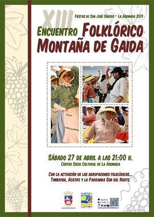 El encuentro folclórico Montaña Gaida será este sábado, 27, con las actuaciones de los grupos Acatife, Timbayba y la Parranda Son del Norte. Tras este encuentro folclórico, en su décima tercera edición, llegará una buena propuesta para la juventud con la actuación del Dj`s Ángel Pérez.