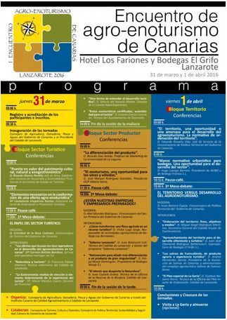 La cita, según explica en nota informativa el Cabildo de Lanzarote, tendrá lugar en el Hotel Los Fariones y Bodegas El Grifo los días 31 de marzo y 1 de abril, de 9.00 a 20.00 horas. Las personas interesadas en asistir a este evento que se estructura en tres bloques temáticos -turístico, productor y del territorio- disponen hasta el 28 de marzo (inclusive) para formalizar su solicitud, que pueden descargar a través del enlace de la página web del ICCA http://goo.gl/jFCW1H.