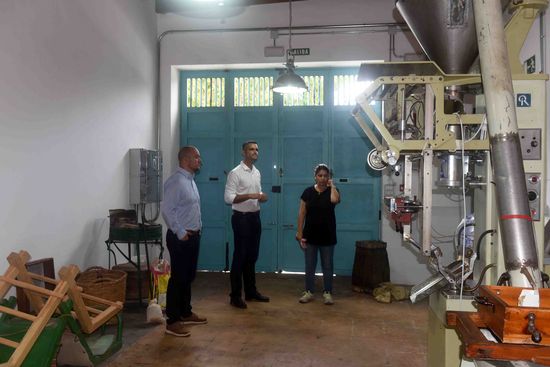 Los concejales de Agricultura, Raúl de León, y el de Medio Ambiente, Alexis Tejera, visitaron las instalaciones como ya habían hecho en varias ocasiones, para compartir no sólo tiempo y recuerdos sino espacio en un sitio tan emblemático como es la molina de José María Gil, y poder tener entre sus manos este manjar de nuestra gastronomía tradicional, que es el gofio recién molido, aprovechando la ocasión para conversar un rato con las dos mujeres empresarias que hacen que la calle vuelva a oler a molienda y gofio.