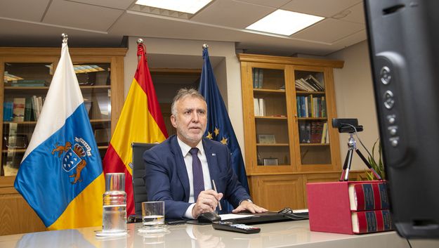 El presidente de Canarias se refirió a que el Archipiélago es de las regiones españolas más afectadas en lo social y lo económico por la crisis generada por el coronavirus debido a su mayor dependencia del turismo (35% del PIB y 40% del empleo), aún sin poder reiniciar su actividad con garantías sanitarias sobre la COVID-19. Este sector se pondrá en marcha de forma paulatina, con unas previsiones de visitantes este 2020 en torno a los tres millones de personas, muy por debajo de los 16 millones de turistas atendidos en 2019.