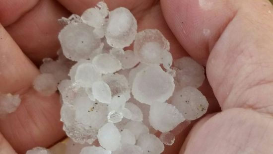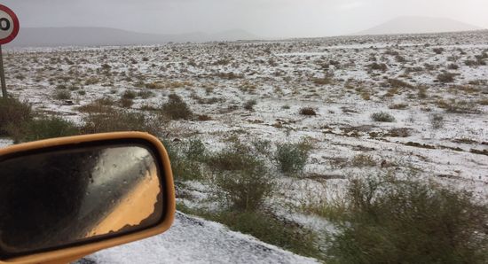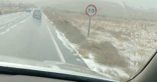 Sin embargo, la imagen más curiosa no fue la del agua, sino la de la cantidad de bolas de granizo que se fueron agolpando en la carretera y que sobre todo se mantuvieron durante unos minutos en el campo, creando la sensación de que había caído nieve por toda la zona.