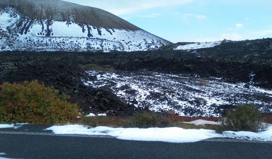Además la carretera de La Geria por la zona del municipio de Tinajo se vio desbordada también por el granizo, lo que hizo que muchos vehículos se detuvieran ante la imposibilidad de continuar la marcha.
