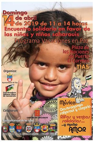 Cada año un grupo de pequeños saharuis residentes en el Sáhara se trasladan hasta Lanzarote donde conviven con familias isleñas. En este encuentro, que tendrá lugar entre las 11 y 14 horas, se promoverán rifas para recaudar fondos destinados a la financiación de estos traslados de los participantes en el programa Vacaciones en Paz.