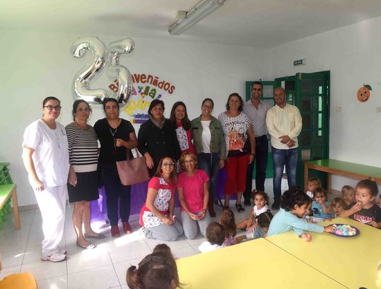 Los actos aunque sencillos han contado con gran participación. Todos centrados en la jornada del 24 de noviembre, a las 11.00 horas se realizó en la Guardería un encuentro al que acudió la concejal de educación, Alma González, acompañada por los ediles municipales Alexis Tejera y Raúl de León, y trabajadoras que han formado parte de la plantilla durante los 25 años que lleva prestando servicio, encuentro en el que revivieron experiencias y compartieron un rato, con un café y un trozo de tarta de aniversario, siendo conscientes de los cambios y crecimiento de este proyecto más que consolidado.