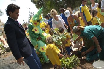 Tras el acto dedicado al reciclaje, que finalizó de una manera muy simpática cuando hizo acto de presencia un animador provisto de disfraz de árbol, se desplazaron hacia la que es ya conocida en el hotel como Avenida de los Árboles, a participar en la plantación de cinco árboles.