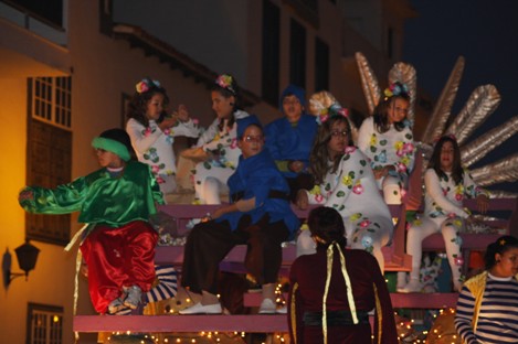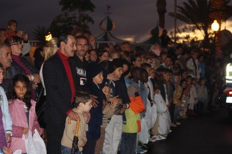 La Cabalgata empezó a las seis de la tarde en la Avenida Vargas, para desembocar en la Playa del Reducto tras pasar por las avenidas de La Marina y la Mancomunidad. La Comitiva Real este año se compuso de tres carrozas, una para cada Rey Mago, 25 camellos, dos grupos musicales y distintos personajes de dibujos animados. Durante el desfile, a lomos de sus camellos, Los Reyes repartieron ilusión y muchos caramelos para los chinitos. Ni la lluvia pudo con la ilusión y alegría de niños y mayores.