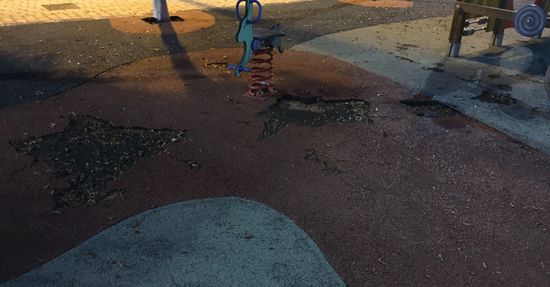 El grupo de padres y madres han realizado fotografías para demostrar lo que es una obviedad para las autoridades locales, un parque con la mayoría de los columpios rotos, con el suelo completamente agujereado y con un aspecto que en lugar de invitar al juego invita a la huida inmediata.