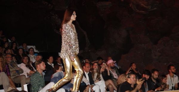 Tras la recepción, el público, entre el que figuraban destacadas celebrities como la lanzaroteña Helen Lindes, Fiona Ferrer, Brianda Fitz-James Stuart, Elizabeth Reyes, Carla Pereyra, Marta Asturias, Miranda Makaroff y Óscar Higares, entre otras, y un centenar de periodistas nacionales e internacionales e influencers especializados en el sector de la moda, se trasladó al interior del Auditorio Jameos del Agua para disfrutar con la colección cápsula de Custo Barcelona, ochenta espectaculares prendas, la mitad, inéditas, que combinan los colores y texturas con los que habitualmente trabaja el diseñador. Especialmente llamativos fueron los ocho looks inspirados en la isla para los Custo se sirvió, incluso, de elementos tan significativos del patrimonio insular como son las famosas rosetas de la artesana Macarena Arrocha.