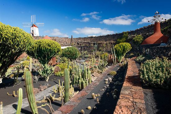 Fue la última gran intervención de César Manrique en Lanzarote. Inaugurado en 1990, está levantado sobre un espacio degradado que Manrique transformó en un sistema concéntrico de terrazas y ambientes para dar cobijo a una espectacular colección de plantas suculentas (cactáceas) que se convierten en el punto de encuentro de la isla con otras áreas geográficas del planeta.