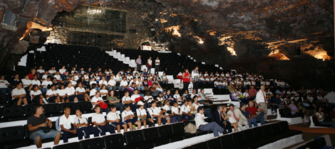 El auditorio de Los Jameos del Agua, que acogió este programa líder en la radio pública española, abrió sus instalaciones tras su reciente apertura y acondicionamiento para albergar, junto más de 500 espectadores, el programa matinal de Radio Nacional de España.