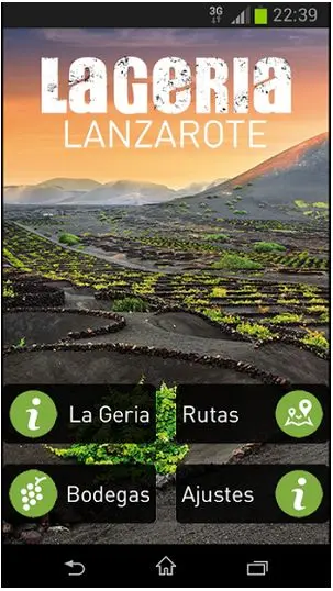 La aplicación contiene mapas de las rutas y fotografías. Se divide en cuatro apartados: uno dedicado a la historia de La Geria, otro donde se detallan las bodegas del lugar, un tercero donde se describen y localizan vía gps las seis rutas ecoturísticas y otro denominado 'ajustes' donde se explica el proyecto 'Salvar La Geria' entre otros aspectos.