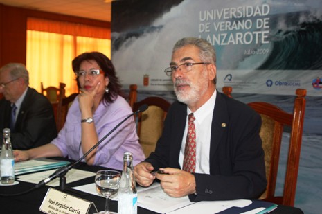 El rector de la Universidad de Las Palmas, y el rector de la Universidad de la Laguna, Eduardo Doménech, llegaron este martes a Lanzarote para presentar en el salón de plenos del Cabildo la Universidad de Verano 2009, que celebra en la Isla su quinta edición.
