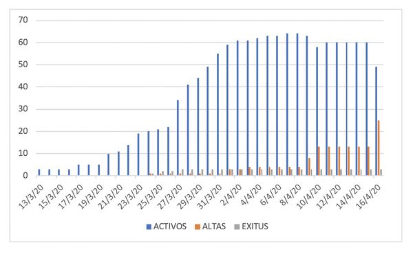 Como elemento positivo, cabe destacar que el número de altas ha pasado de 13 a 25 personas y que seguimos sin tener que lamentar más muertes desde el pasado 27 de marzo. También se ha reducido considerablemente el número de pacientes que debían estar siendo controlados mediante atención domiciliaria y con un descenso de 44 a 34 casos.