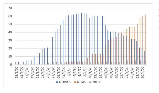 De las 84 personas que han contraído el covid-19, sólo 5 permanecen ingresadas en el Doctor José Molina Orosa, 2 de ellas en planta y 3 en la Unidad de Medicina Intensiva. Este viernes pasaba de la UMI a planta una mujer de 71 años que llevaba ingresada desde el 29 de marzo.