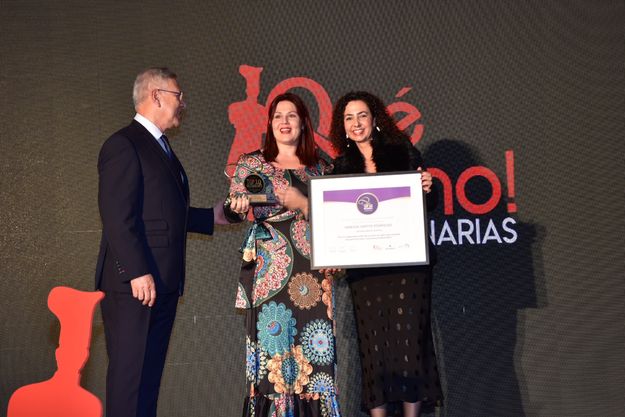 Entrega Rita Bolaños, miembro del jurado y gerente de Seranca, empresa copatrocinadora de estos premios.