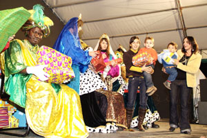 Sus Majestades Los Reyes Magos de Oriente y su Comitiva Real, que este año estuvo compuesta por tres carrozas, una para cada Rey Mago, 25 camellos, dos grupos musicales, dos grupos de animación de cerca de cuarenta personas cada uno, distintos personajes de dibujos animados, un grupo de patinadores, gigantes, cabezudos y zancudos, dragones chinos y los pajes, se lo pasaron en grande. Pero fue tanta la expectación que los nervios le jugaron una mala pasada al camello del Rey Gaspar y este año no pudo terminar su recorrido por la capital.