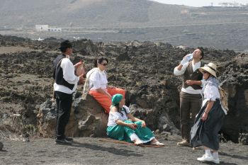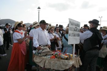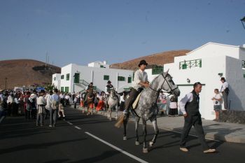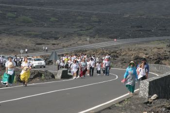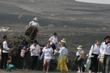Hasta llegar a Tinajo, los alrededores del pueblo no eran sino un hervidero de romeros realizando continuas paradas en los márgenes de las carreteras, cansados de las largas horas de camino y del calor. Sus coloridos atuendos se divisaban entre las lavas, de la misma manera que se adivinaban las ansias por llegar al destino y la satisfacción que les causaba que, pese al largo trayecto, el camino a Mancha Blanca se había convertido una vez más en una experiencia divertida e inolvidable.