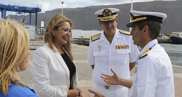 La presidenta del Cabildo de Lanzarote, María Dolores Corujo, presenció este jueves por la mañana el homenaje a La Graciosa con la escala del buque escuela “Juan Sebastián de Elcano”.