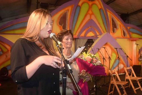 La alcaldesa, María Dolores Corujo, le dedicó unas palabras destacando “hermoso su baile y maneras en la puesta en escena que da movimiento al sentimiento del canto y música de esta tierra. El movimiento exacto para que la falda gire sin tropiezos, mientras centramos nuestra mirada en el conjunto de la coreografía. Arte y sobre todo sentimiento, porque eso es lo que se premia, la sencillez de lo que se hace desde dentro pero con el calor justo para enseñar y hacer pervivir y perpetuar en el tiempo nuestras tradiciones”.