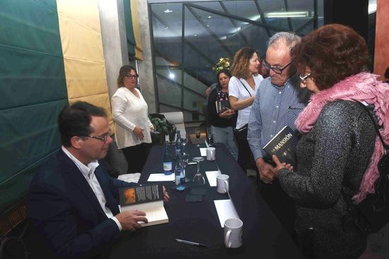 Decenas de lectores, según describe el acto este lunes en nota de prensa posterior la organización del evento, ocuparon el patio de butacas del hall principal del Hotel Miramar de Arrecife, registrando aforo completo, en la que ha supuesto la presentación del novelista en Lanzarote.