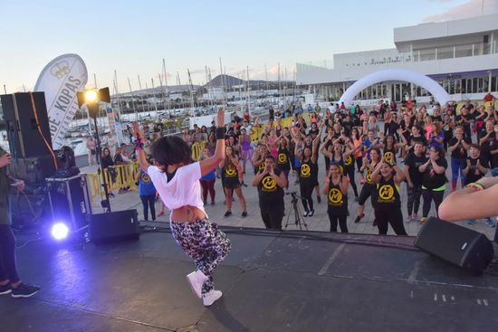 Deporte y solidaridad pero sin perder el ritmo. El Centro Comercial La Marina de Arrecife se convirtió en un festival de música de lo más concurrido con más de doscientas personas con ganas de deporte, pero sobre todo de poner su granito de arena en beneficio de la Protectora de Animales Sara.