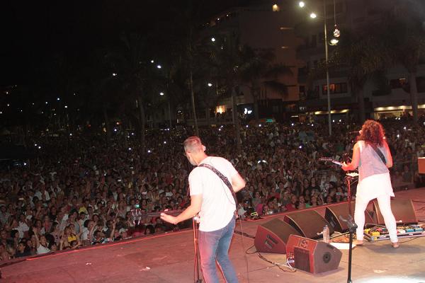Noventa minutos de actuación, según describe este sábado en nota de prensa el Ayuntamiento de Arrecife, en la que los asistentes no pararon de cantar y bailar, una de las canciones compartidas con la joven cantante lanzaroteña Eva Ruíz.