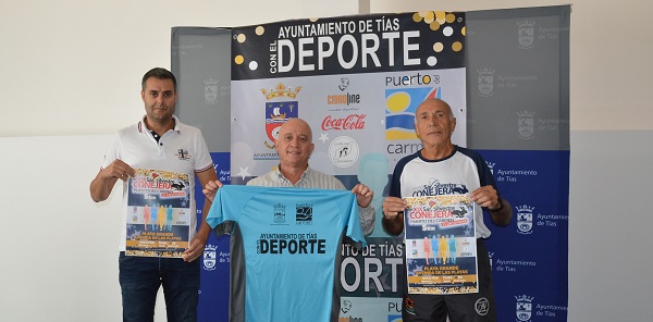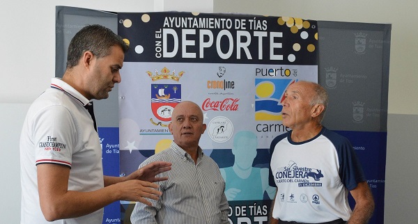 El alcalde de Tías, Pancho Hernández, acompañado por el concejal de Deportes y Fiestas, Francisco Javier Aparicio Betancort, y el director de la prueba y representante de Cavelan, José Manuel Ojeda, presentaron esta mañana en rueda de prensa esta XIX edición de la San Silvestre Conejera.