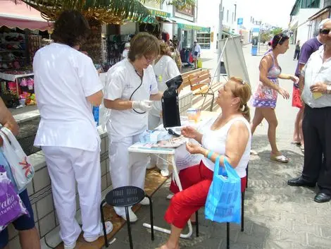 Esta iniciativa, fruto de la colaboración entre el Servicio Canario de Salud y el departamento de Sanidad y Servicios Sociales del Ayuntamiento de Yaiza, que coordina Francisco Guzmán, persigue mejorar la salud de la población usando la prevención como método más eficaz en la lucha contra las distintas patologías. Así, un equipo de técnicos del Centro de Salud de Playa Blanca, capitaneado por Begoña Domínguez, subdirectora de enfermería de la Zona Básica de salud de Yaiza, se ha encargado durante esta mañana de informar a la población acerca de los problemas y los riesgos cardiovasculares, entre otros, que se derivan de una vida sedentaria, y los beneficios para el organismo que supone, por el contrario, la práctica de hábitos de vida saludable. Además, los sanitarios practicaron diversos análisis para controlar la glucosa y tomaron la tensión y la frecuencia cardíaca de numerosos viandantes.