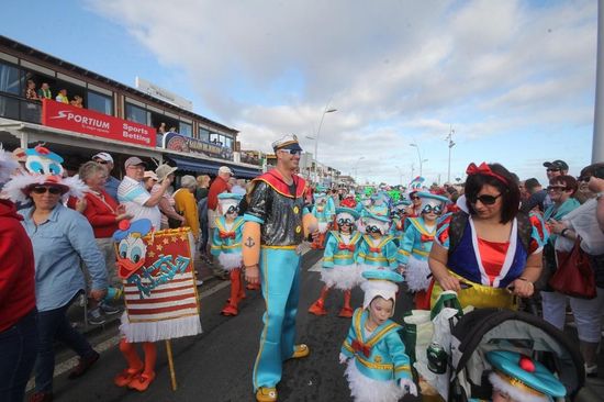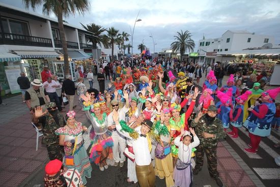 El multicolor y animado desfile comenzaba sobre las cinco de la tarde con la llegada de la parranda marinera Los Buches, como es tradición, seguida por los integrantes de la Comparsa Sur Caliente del municipio de Tías, que este año ha logrado nuevamente el tercer Premio de Interpretación del Concurso de Comparsas del Carnaval de Las Palmas de Gran Canaria. Tras ellos, se sucedieron el resto de grupos carnavaleros de toda la isla e ingeniosas y originales carrozas. Además, entre las miles de mascaritas también participaron personajes conocidos en todo el mundo como Donald Trump, el Papa Francisco o Charlot, éste último encarnado por Juan Medina, que lleva más de treinta años participando en los carnavales de Puerto del Carmen.