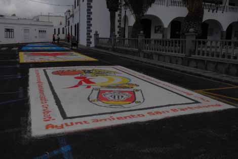 El Ayuntamiento de San Bartolomé realizó 3 alfombras una del Departamento de Juventud, otra a cargo de la Ludoteca y una tercera con las participantes en el Buchito de Café.