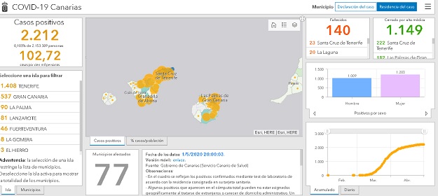 Según ha confirmado la Consejería de Sanidad en su balance de la tarde y tras la actualización que hace de los números a última hora del día, las Islas tienen en estos momentos 2.212 casos de personas contagiadas y 140 muertos por la acción directa de la enfermedad. El número de altas queda en 1.149 personas a falta de que se corrija el posible error o haya otra actualización de las cifras.