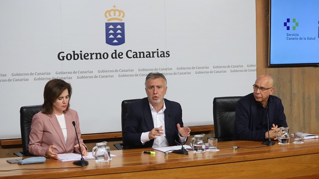 El presidente de Canarias, Ángel Víctor Torres, y la consejera de Sanidad, Teresa Cruz Oval, han presidido la reunión del Comité Ejecutivo en el que se ha analizado las medidas a tomar con respecto a los nuevos casos de coronavirus COVID-19.
