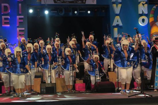 La tercera agrupación en subir al escenario del Recinto Ferial fue la afilarmónica Las Revoltosas, con diseño de Manuel Camejo y dirigidas por Lina Martín.